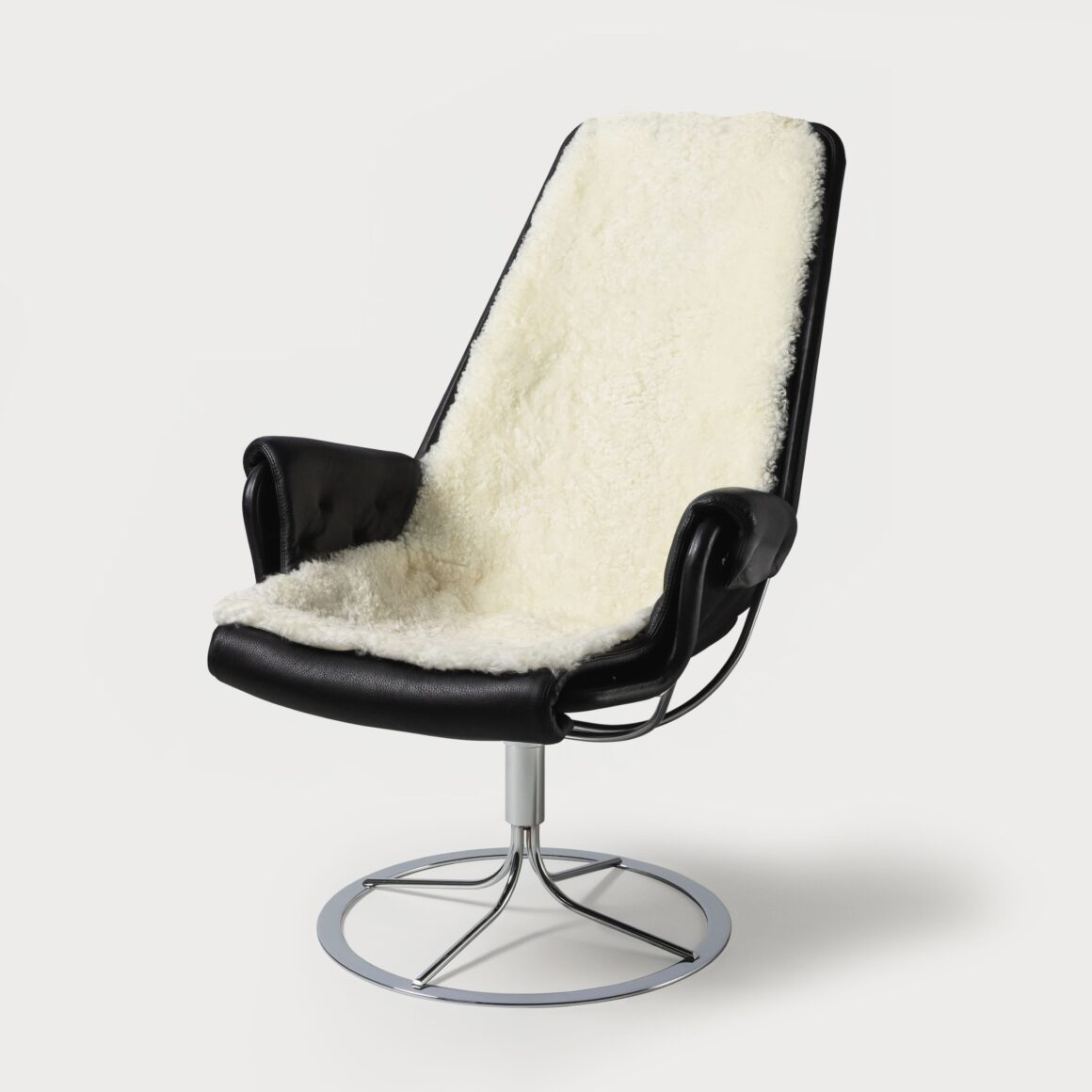 Överdrag av fårskinn till Bruno Mathssons fåtölj Jetson.